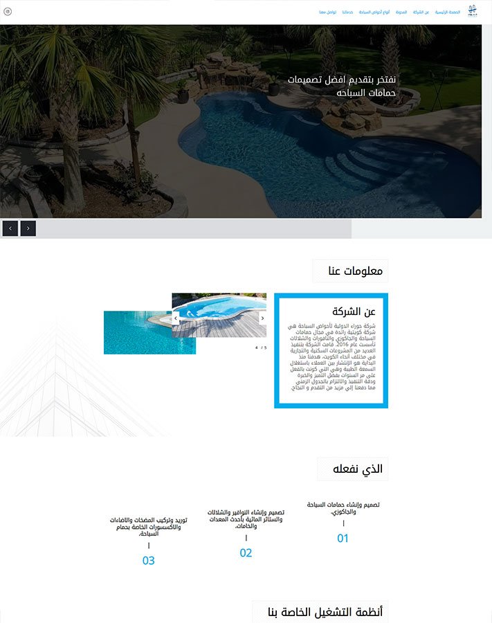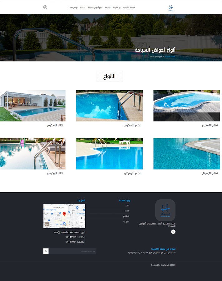 It features high-quality images that reflect the quality and elegance of swimming pools, inspiring confidence in visitors.